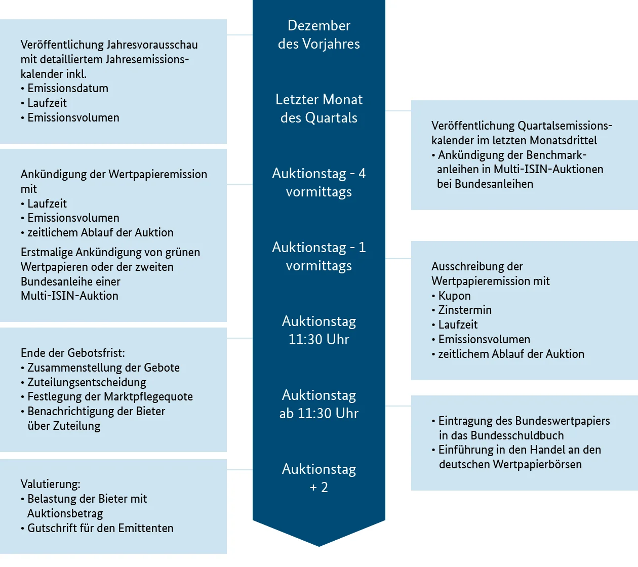 - Die Auktionen für nominalverzinsliche Bundesanleihen ab einschließlich 7 Jahren Laufzeit finden jeweils an einem Mittwoch statt.